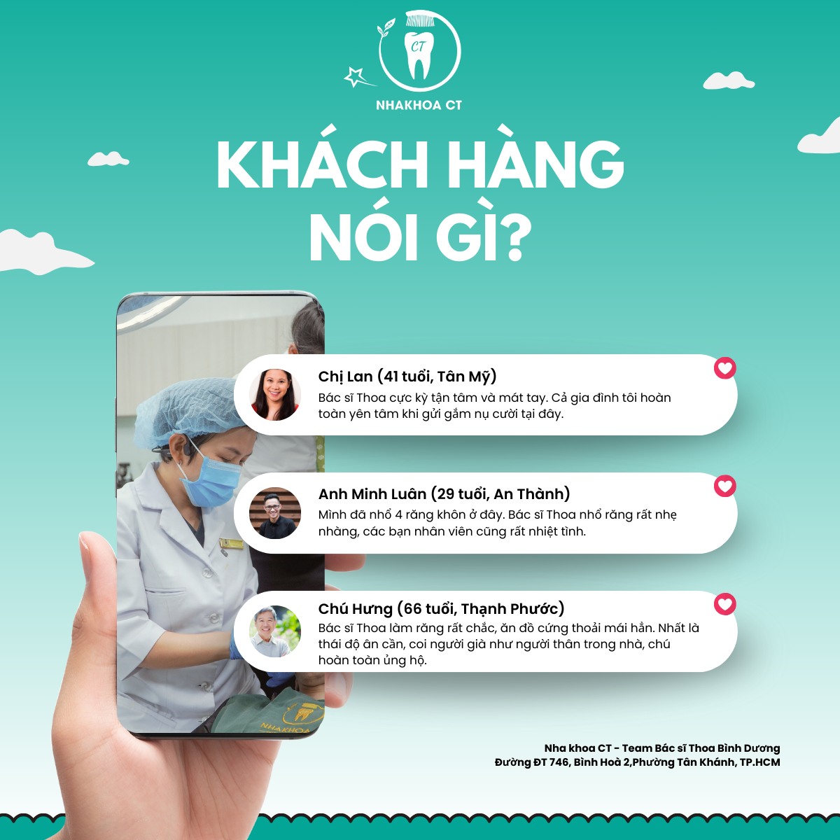 Tại Nha khoa CT, mỗi khách hàng đều được thăm khám kỹ lưỡng trước khi điều trị để lựa chọn giải pháp phù hợp, an toàn và tối ưu cho sức khỏe răng miệng lâu dài.