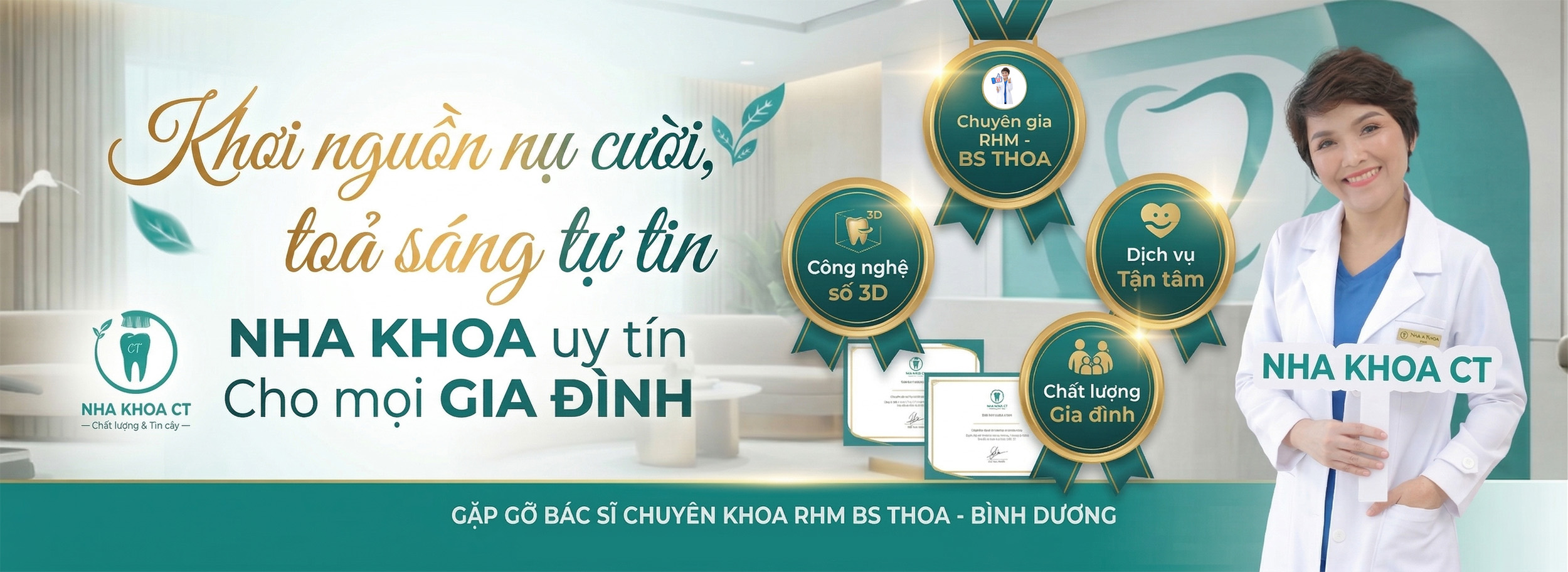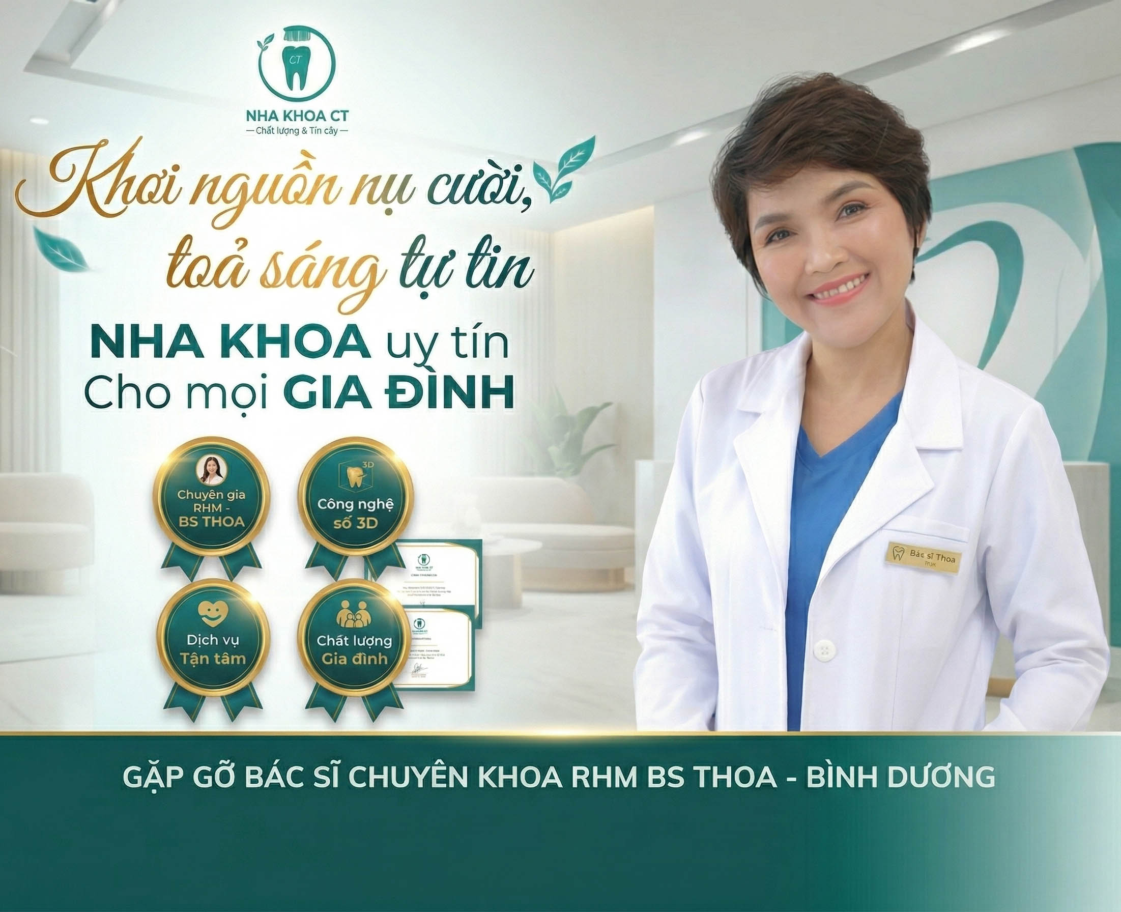 Với sự kết hợp giữa chuyên môn, quy trình rõ ràng và sự tận tâm trong chăm sóc, Nha khoa CT mong muốn mang đến cho khách hàng trải nghiệm nha khoa nhẹ nhàng hơn, chủ động hơn và yên tâm hơn trong mỗi lần thăm khám.